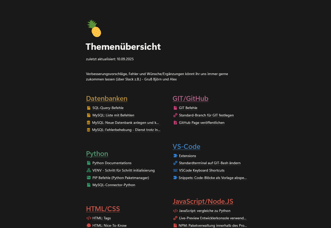 Hier halte ich fest, was im Alltag Zeit und Nerven spart: wiederkehrende Workflows, tricky Fehlermeldungen und elegante Code-Muster. Alles ist so aufbereitet, dass ich auch nach Monaten sofort wieder einsteigen kann. Das ist mein persönliches Nachschlagewerk um dem Stack-Overflow Chaos zu entkommen.